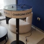 Lounge je stolić za punjenje mobitela sa 6 uvlačivih kabela za punjenje i integriranim Qi bežičnim uređajem. Potpuno prilagodljiv nudi mogućnost brendiranja i sponzorstva. Atraktivan dizajn za mjesta kao što su čekaonica, dnevni boravak, sajmovi, događaji, kafići i slično.
