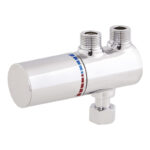 - Termostatski ventil iz mesinga namijenjen miješanju vode koji omogućuje jednostavno podešavanje tople i hladne vode izravnim spajanjem na kutne ventile ispod umivaonika.